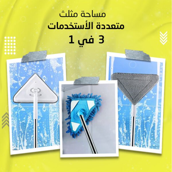 – هتنضفي الأرضيات و الازاز و تلمي المياه من خلال مساحة مثلث 3 في 1 متعددة الاستخدامات مش هتحتاجي اكتر من قطعة