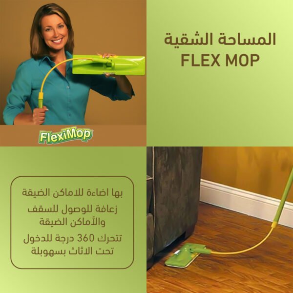 – هتمسحي الأرض و تشيلي الأتربة من الحيطة بمنتج واحد مع المساحة الشقية FLEX MOP.